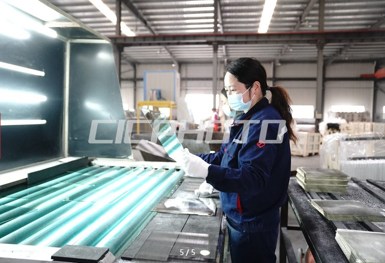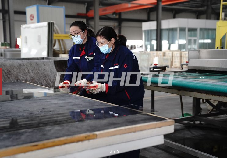 12月22日,河北富晶科技股份有限公司工人正在車間檢驗玻璃。