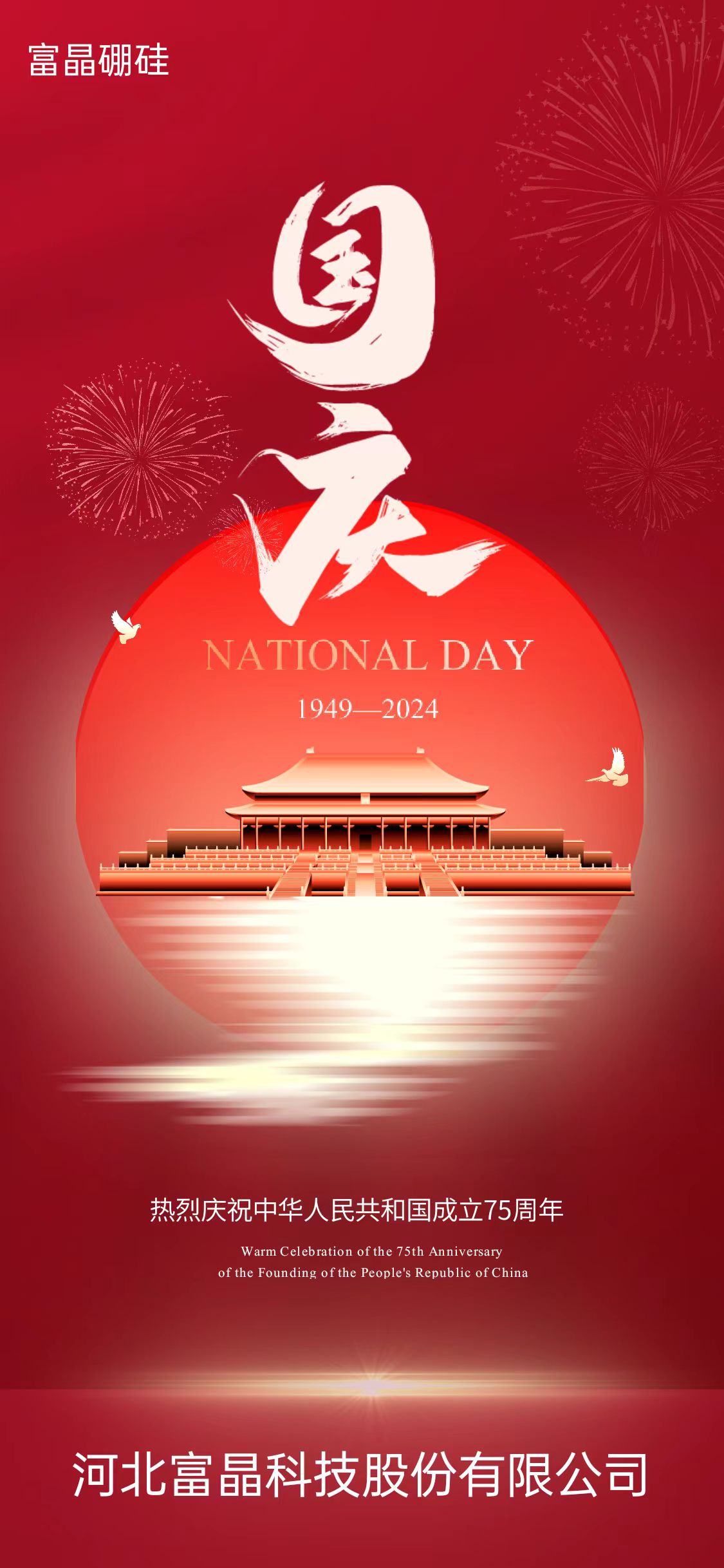 盛世華誕 喜迎國慶——河北富晶科技股份有限公司熱烈慶祝中華人民共和國成立75周年!